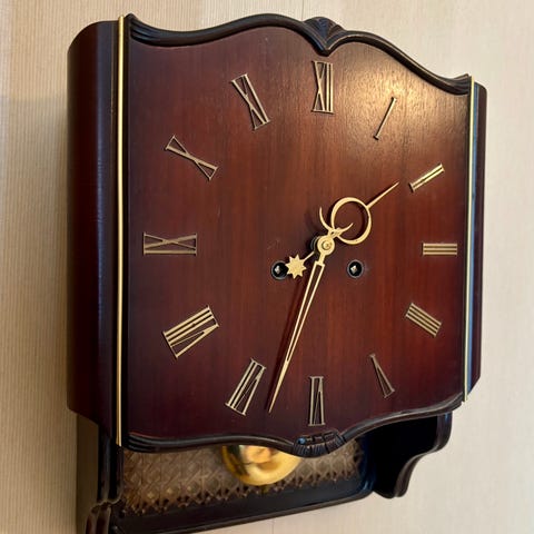 Franskt Väggur- Leijarur- Nykel och pendel ingår.- hämtas Östermalm 2/3 eftermiddag