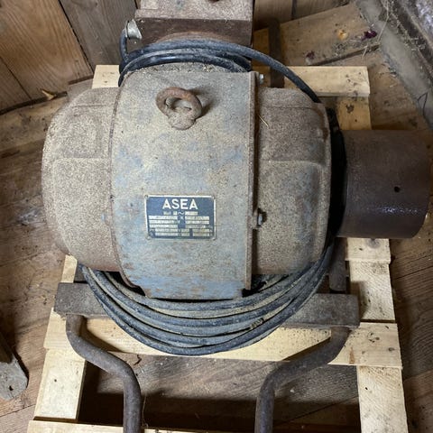 Elmotor enfas med kilspårskiva och frekvensriktare.