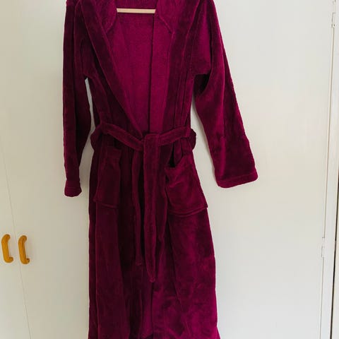 Mjuk och mysig morgonrock i en fin rosa nyans. Modellen har en avslappnad passform med knytband i midjan och två praktiska fickor framtill. Ärmsluten är prydda med en dekorativ vågig kant. Perfekt för avkoppling hemma.