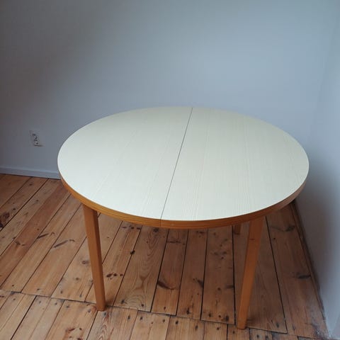 Runt- ovaltmatbord med iläggsskivor trä ljust