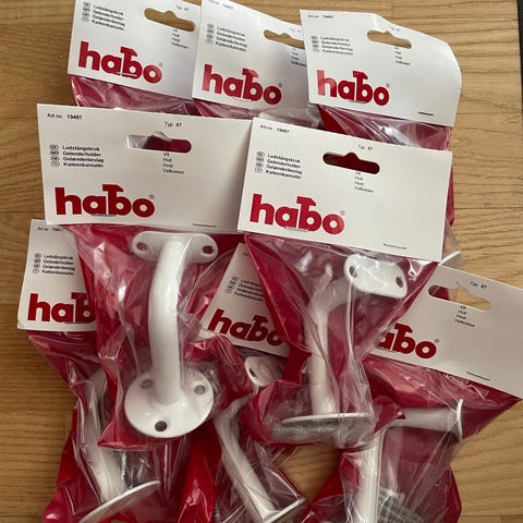 Ledstång i tre delar, Synligt använd, se bilder. den korta delen är 107 cm lång (mätt övre diagonalen), den långa delen 352 cm och den mellersta 243 cm
