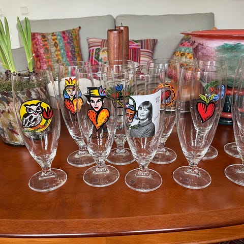 Lasse Åberg Konst på glas glas med figurmotiv blandade modeller