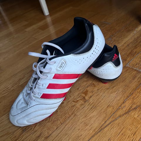 Puma King 21 Ultimate LE fotbollsskor för herr i storlek 45. Modellen är avsedd för fotboll och har FG/AG-dobbar som passar för spel på naturgräs och vissa konstgräsplaner. Skorna är vita med mörkröda detaljer och har snörning framtill för justerbar passform. Yttersulan är utrustad med fasta dobbar för bra grepp på planen. Levereras i originalkartong märkt King 21 Ultimate LE FG/AG, EU-storlek 44,5 (motsvarande cirka 45).