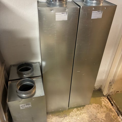 Cirkulära ljuddämpare för till- och frånluft.