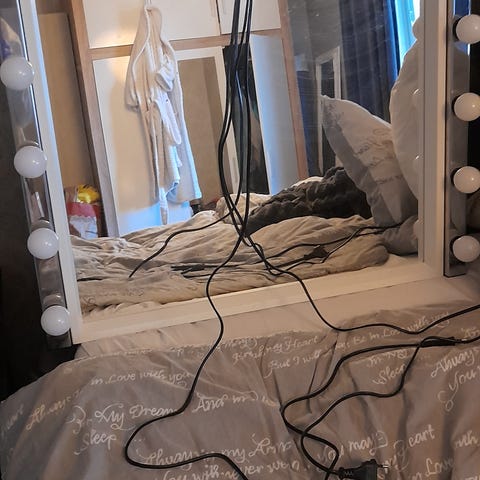 Vit sminkspegel med belysning. Fungerar felfritt, inga synliga skador.