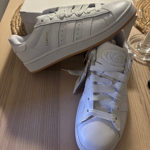 Säljer ett par Adidas Campus 00s W sneakers i ljusrosa. Skorna är helt nya och har aldrig använts (etiketter sitter fortfarande kvar). Säljer skorna då jag ej hunnit använda dem. Vid frågor är det bara att höra av sig.