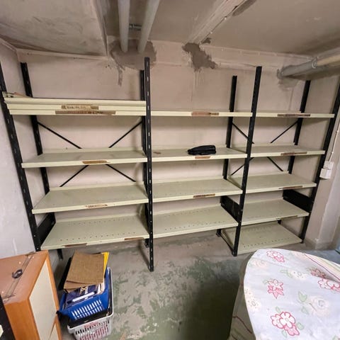 Varje sektion 83 cm bred. Hela hyllan som den är monterad nu totalt 163 cm bred. Höjd 186 cm.