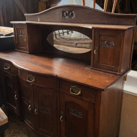 Träsänggavlar i mörkbetsat trä