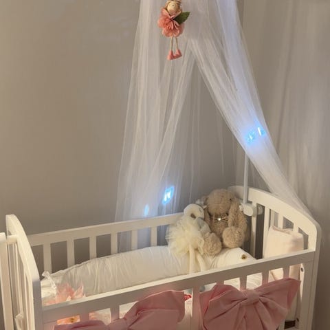 Vagga med ställning. Perfekt för den nya familjemedlemmen! Passande madrass och lakan ingår. Höjd 68 cm / Längd 86 cm / Bredd 44