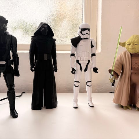 Star Wars actionfigurer föreställande karaktärerna Kylo Ren, Darth Vader och Stormtroopers. Figurerna är tillverkade i plast och har detaljerade dräkter med hjälmar, rustningar och tillbehör som ljussablar. Passar som samlarfigurer eller leksaker för barn och vuxna som gillar Star Wars-universumet. Kan placeras på hylla, skrivbord eller i samlingsmonter.45 cm höga
