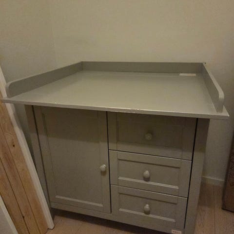 Troll byrå med löstagbar skötbordsdel. Fin möbel i dig men har en del skav på skivan som dock döljs om man lägger på en skötmadrass.