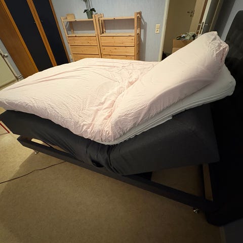 Säljer min Sängfabriken Julia 160x200 ställbara säng (Medium/Fast), köpt i augusti 2024.