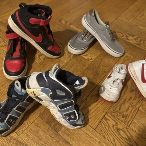 Nike sneakers i rött och svart, storlek 35. Synligt använda, fortfarande i bra skick. Pris: 150:-