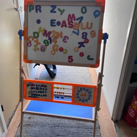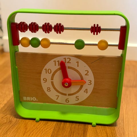 BRIO lärcenter. Griffeltavla, bokstavstavla och klocka med staffli. 63.5 x 49 cm.