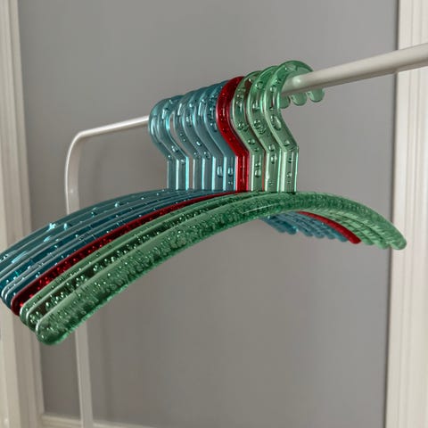 Fem stycken röda galgar vid namn "Hemlis" från Ikea.