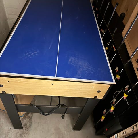 Multispel spelbord med flera spel i ett bord. Bordet har utbytbara spelytor för fotbollsspel, biljard, airhockey och bordtennis. Stabil konstruktion med fyra ben och spelplaner i olika färger anpassade för respektive spel. Passar för inomhusbruk i hem, spelrum eller fritidsmiljö där man vill kunna växla mellan olika typer av bordsspel på samma bord.