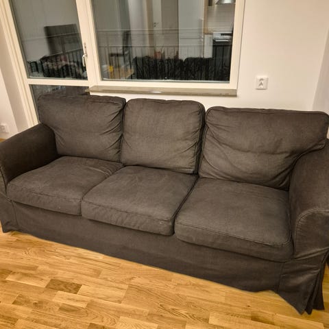 Populära Ektorp från IKEA i 3-sitsutförande med Hakebo grågrön klädsel.