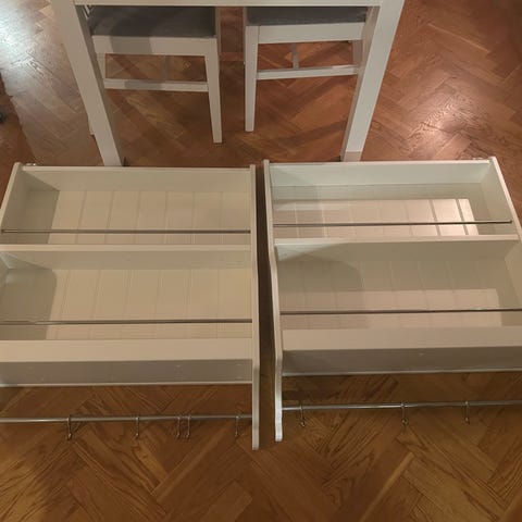 Säljer två st helt oanvända vinställ från IKEA i massivt trä. Varje ställ har plats för 9 flaskor, och är staplingsbara på varandra. Inköpta i början av februari, men de fick inte plats där de var tänkta att stå. Se IKEA:s produktsida för mer info: https://www.ikea.com/se/sv/p/hutten-vinstaell-9-flaskor-massivtrae-70032451/