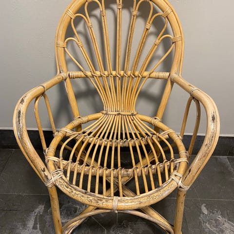 Vintage rottingstol stol karmstol bambu rotting 1970-tal 1980-tal kolonialstil