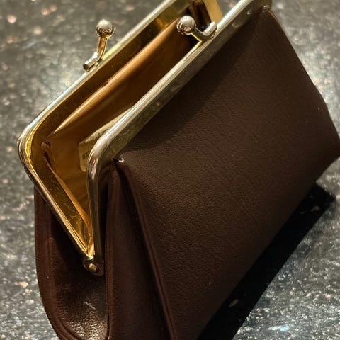 Vintage-portmonnä från 50-talet. Svart med broderade blommor. I utmärkt skick!