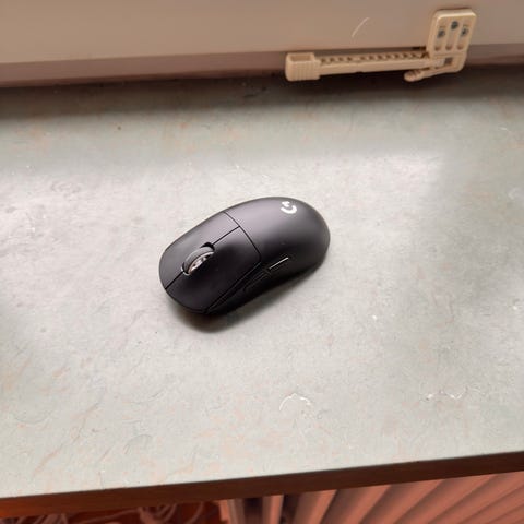 Logitech G Pro X Superlight datormus i svart färg. Undersidan är utrustad med Superglide-skates för förbättrad glidförmåga på musmatta eller bordsyta. Passar användning till datorarbete och spel.