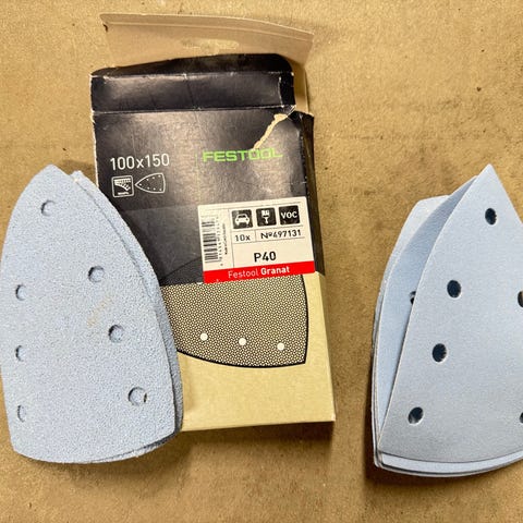 Festool slipmaskin, modell RTS 400 kräver 100% funktionell. Medföljer även en ny original slipbricka, som visas på bilderna. Säljs utan kabel.