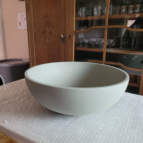 Tvättställ med fristående runt vitt porslinshandfat monterat på en rektangulär svart bänkskiva. Handfatet har bottenventil och hål för blandare i bänkskivan. Passar för montering i badrum eller tvättutrymme där man önskar ett ovanpåliggande handfat på en plan skiva.