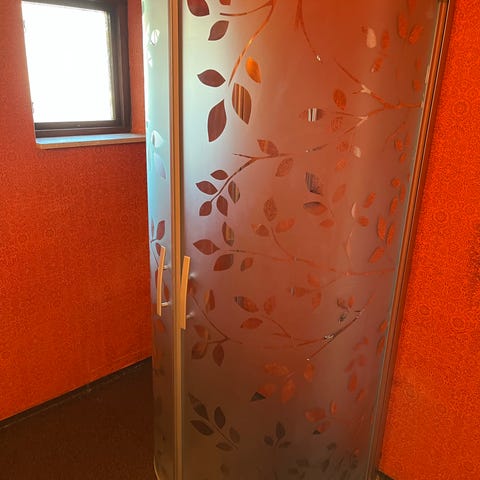 Duschhörna med svart ram glas