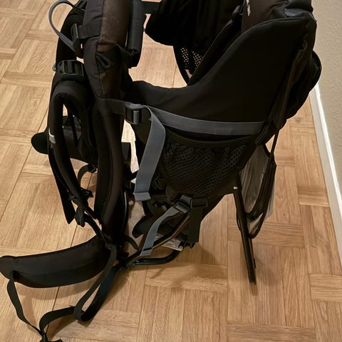 Oslagbar bärryggsäck för barn! Ryggsäcken är justerbar och passar att bära både för dam och herr. Solskydd och regnskydd ingår. Denna bärryggsäck är helt fantastisk och vi säljer nu då barnet växt ur.