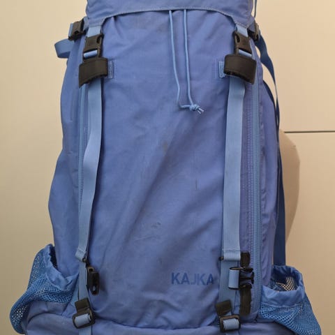 En fjällräven Kajka 75L, använd på 3 vandringar. Köpt 2021