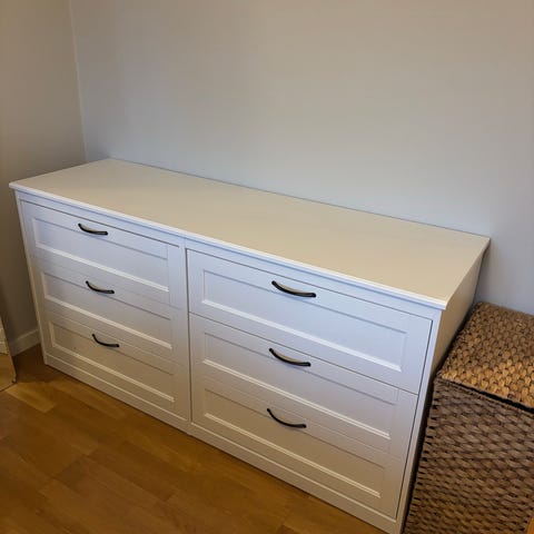 Vit byrå, vit baksida, falsad träskiva