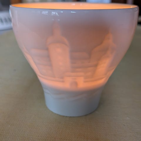 Ljuslykta vit porslin tulpanrelief, Rörstrand