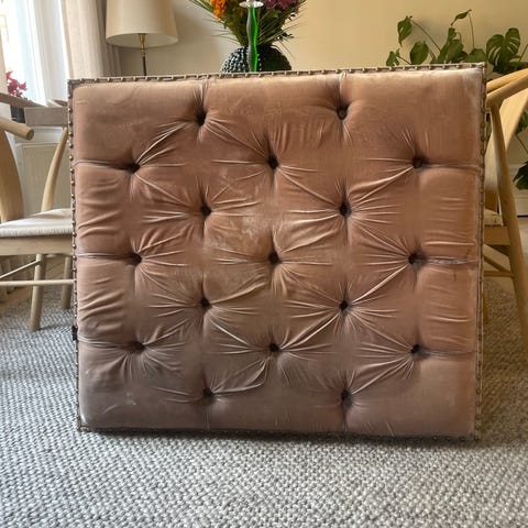 Mio sänggavel i sammetstyg. Gaveln har vadderad, mjuk stoppning och knapptuftad framsida. Passar som huvudgavel till säng och ger en ombonad känsla i sovrummet. Monteras mot vägg eller bakom säng.