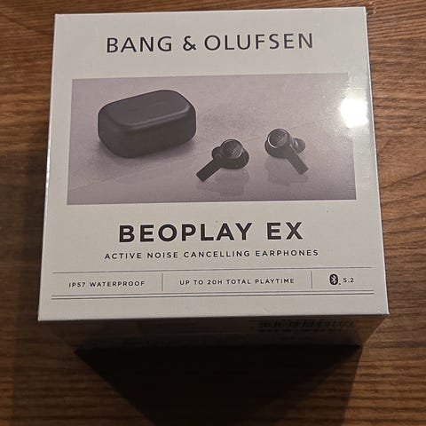 Bang & Olufsen Beocom EX trådlösa in-ear hörlurar i svart färg O öppnad i sin förpackning.