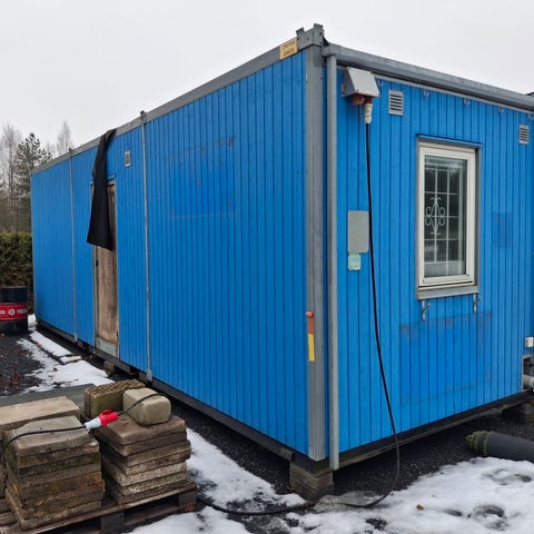 Byggbod Kilsboden med vattentoalett, handfat, dusch, matrum mm. Mått ca 2,95x8,50m