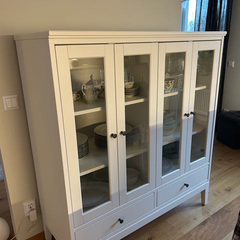 Ett vitt skåp från italienska Calligaris, modell Password. Fyra dörrar, förvaring med glashyllor. Köpt 2015, mycket fint skick. Säljes monterat.