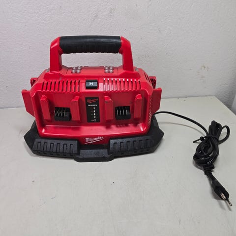 Laddaren är utformad för att kunna ladda flera batterier samtidigt och har bärhandtag för enkel förflyttning. Passar för uppladdningsbara verktygsbatterier från Milwaukee-systemet. Lämplig för användning i verkstad, garage eller på byggarbetsplats där flera batterier behöver laddas parallellt.