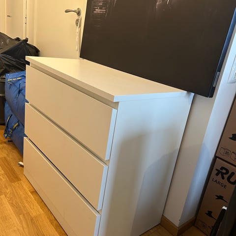 Säljer en IKEA MALM byrå som är ca 8 år gammal. Fin toppskiva i vitt glas medföljer. Byrån är i fint begagnat skick, endast normalt slitage.