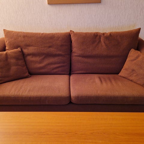 Något sliten på armstöden men i övrigt god sittkomfort.