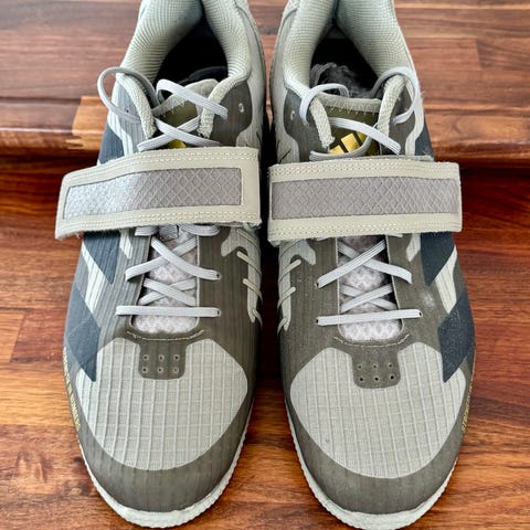 Tyngdlyftningskor storlek 44,5 i gott skick, bara använt skorna cirka 5 gånger. Nypris cirka 1600:- på adidas hemsida.