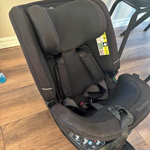 BeSafe bilbarnstol i svart tyg. Modellen har hög rygg med sidokrockskydd och justerbart nackstöd. Stolen är framåtvänd och avsedd för större barn med bilens trepunktsbälte. Monteras med bilens bälte och har markeringar för korrekt bältesdragning. Klädseln är vadderad för ökad komfort och kan tas av för rengöring enligt tillverkarens anvisningar.