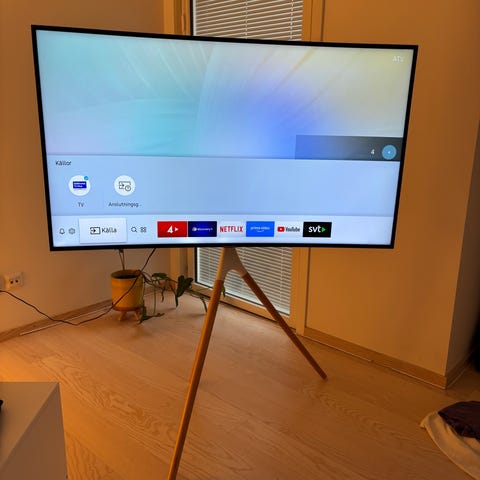 Samsung TV med stativ.