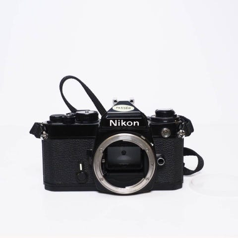 Begagnad analog systemkamera i fint skick (3). Kameran levereras tillsammans med rem och kamerahuslock.