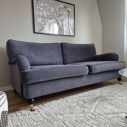 Sofforna är så sköna, tyget går att ta bort och tvätta vilket jag har gjort många gånger. Tyget är slitstarkt men nu ser tyget lite slitet ut.