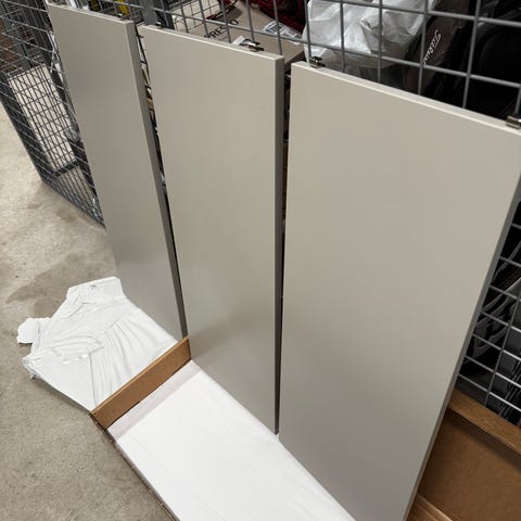 Samtliga beslag och gångjärn medföljer samt en handskriven monteringsanvisning (eller hämta en från Ikeas hemsida om du vill ha bilder)