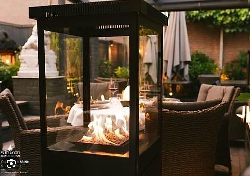 Helt ny insats som kan fällas ned i vanligt terassbord (även trä) Drivs med Propan. Levereras med skyddsglas, vedträn, dekorglasbitar eller pebbles. slumpas bort! Riktpris 7,900 kr