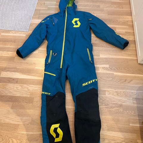 Helt ny skoteroverall av bästa sort!! Scott overall i storlek M. Modellen är en en del-overall med hel dragkedja framtill. Färgen är huvudsakligen svart med gula och gröna detaljer, inklusive flera dragkedjeförsedda fickor på bröst, midja och ben. Overallen har långa ärmar, hög krage och förstärkta partier nedtill på benen. Passar exempelvis för utomhusaktiviteter där ett heltäckande plagg. OBS PRIS nypris 6-7000kr