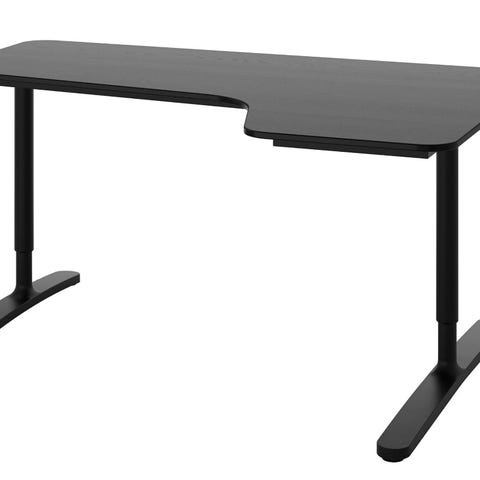 Använt som gamingbord därav tre hål i bakkant av bordsskivan där den varit fäst i vägg för stabilitet. Hålen hamnar bakom skärm så syns inte. Bordsskivan i övrigt bara med några få märken. Fungerande och stabilt skrivbord. Korg för kablar finns under bordsskivan.
