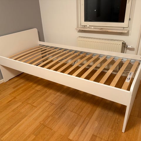 Sängen passar för madrasser som är 90x200 cm. Yttermåtten är 99 x 207 cm. Gaveln är 65 cm där den är som högst.