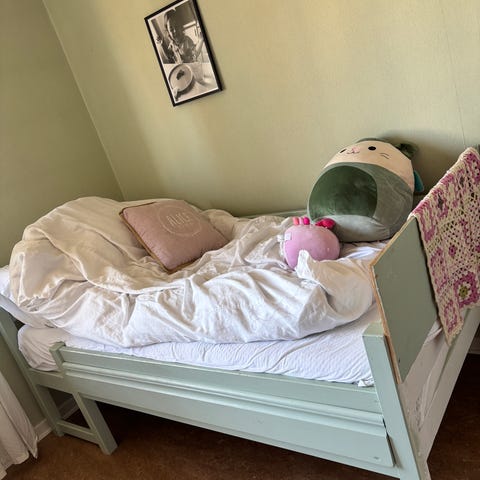 Under madrassen är det botten av träribbor.